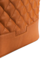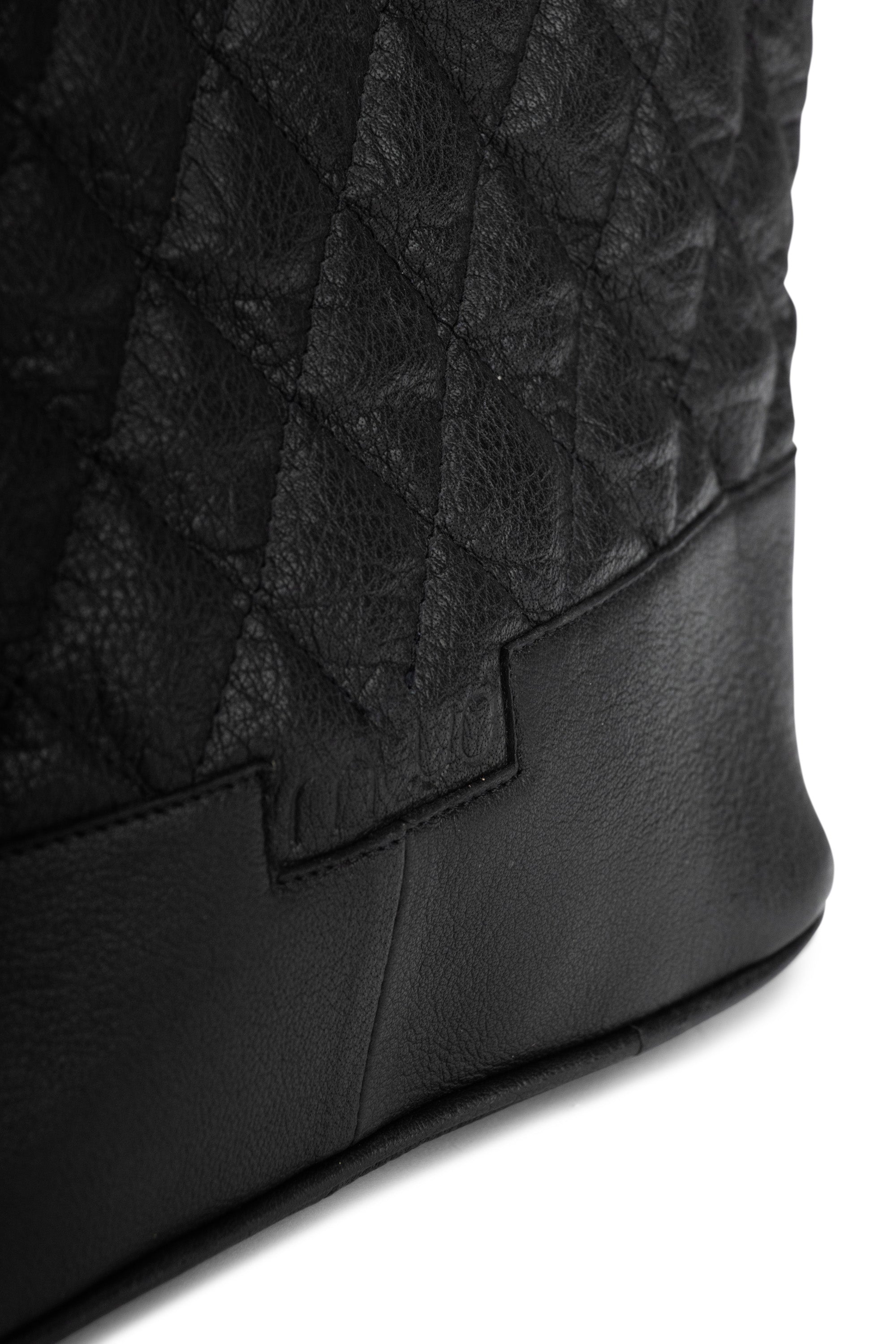 Sidene på vesken presses forsiktig sammen med et lite skinnbånd, en konstruksjon som gir vesken sin eksklusive form og uttrykk.