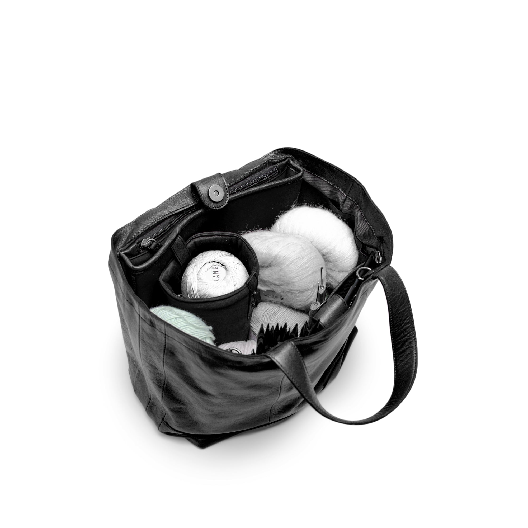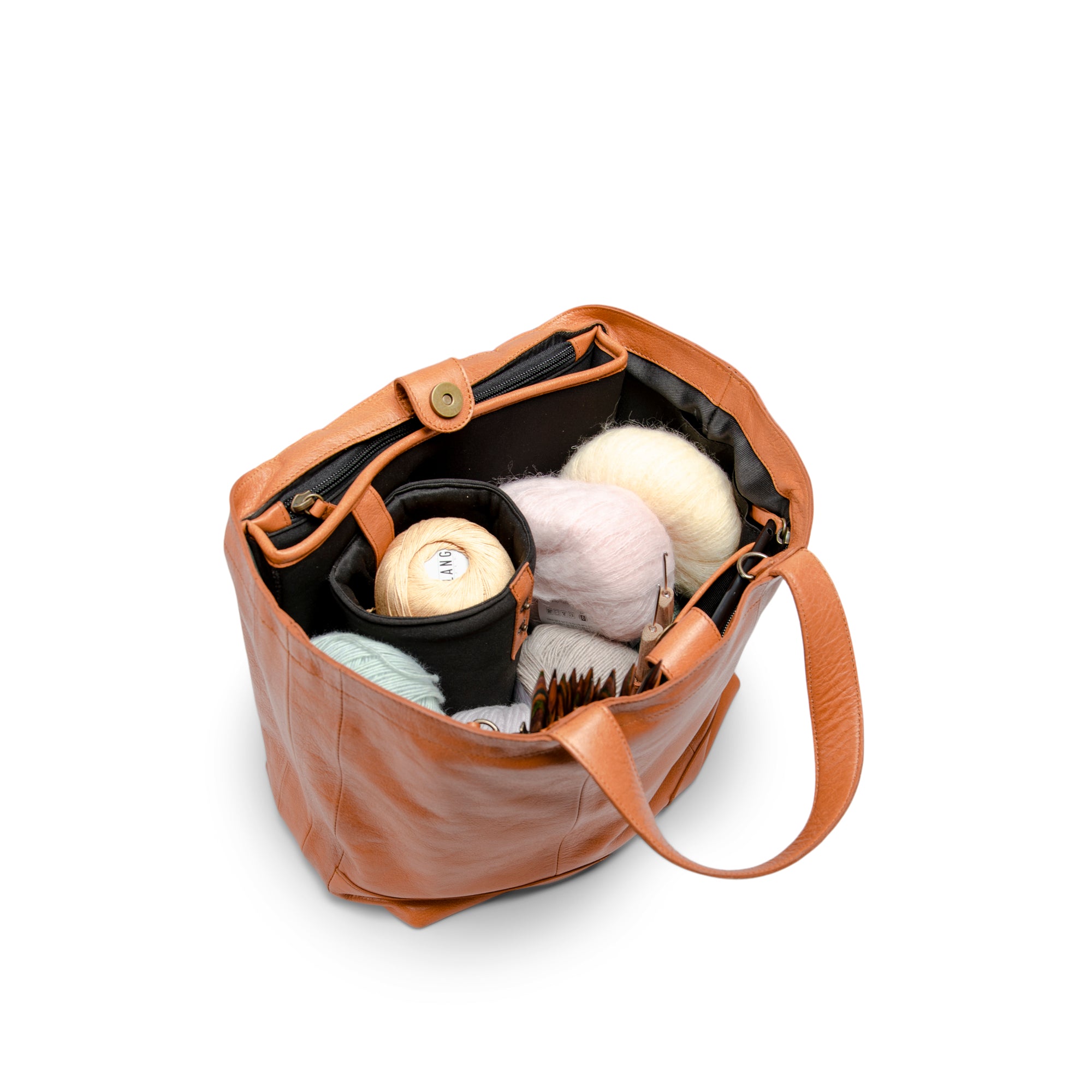 Hiba-vesken er laget for å passe dine prosjekter, og har samtidig plass til tilbehør i ulike størrelser. På den måten kan du holde styr på strikkepinner, sakser, målebånd og små dingser – uansett hvor du er.