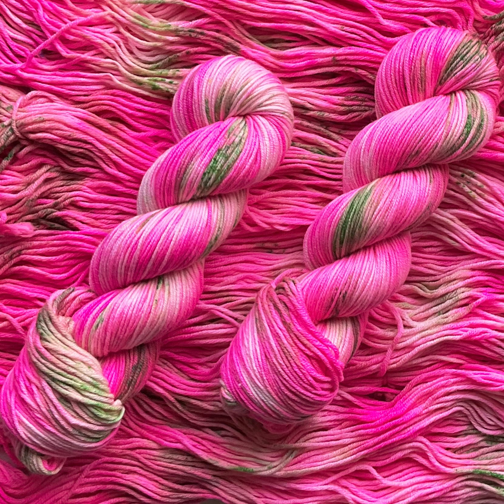 Handdyed yarn in wonderfully soft merino wool in crazy colours.