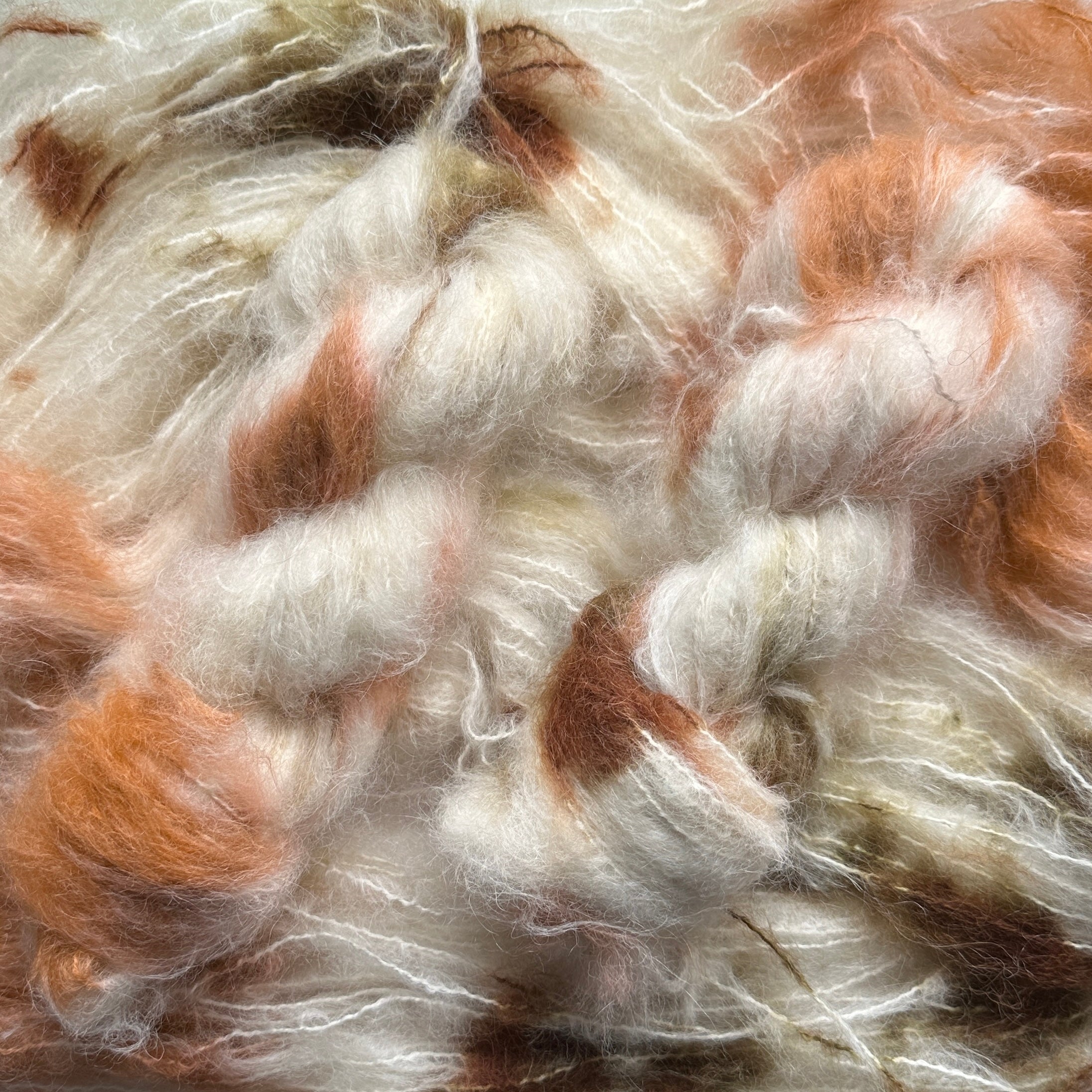 Handdyed dyed yarn in wonderfully soft thick mohair in golden tones.