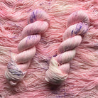 Handdyed yarn in pink with purple specks.