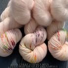 Hand-dyed yarn in a nude shade with speckles in vibrant colors. Matching colorway in Lace Mohair Silk can be found here.