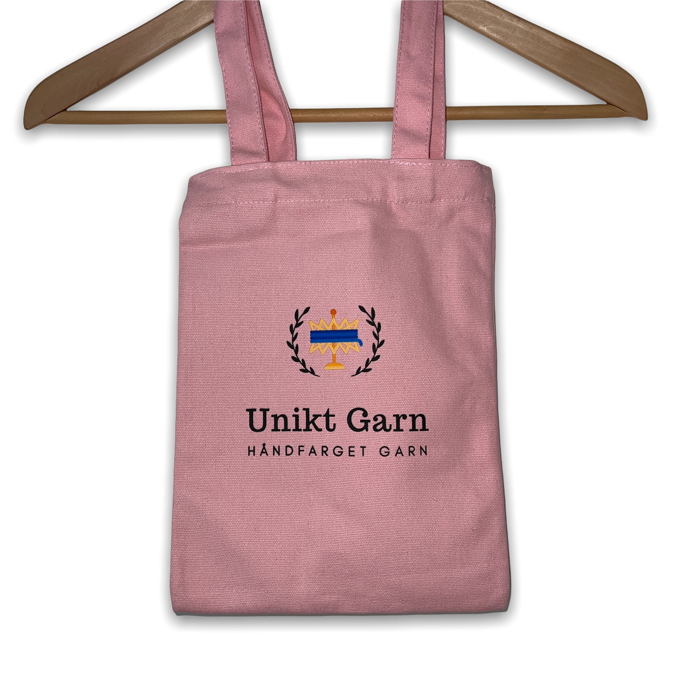 Shopping net/knitting bag in light pink strong cotton canvas with print on one side. Available in two sizes.